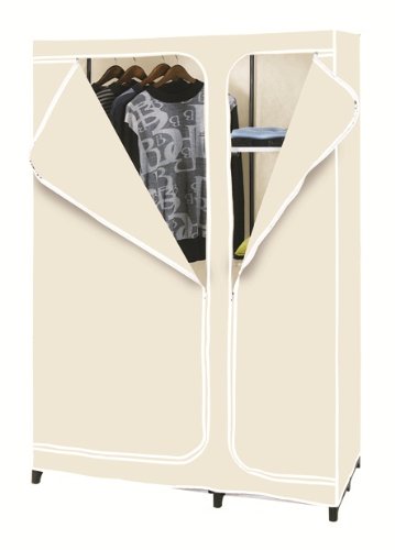 Covered with beige non-woven canvas-effect cover which allows clothes to breath and continue smelling fresh.