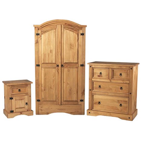 Worldstores - Pine Bedroom Furniture Set Corona Furniture Set Wardrobe Drawers Cabinet